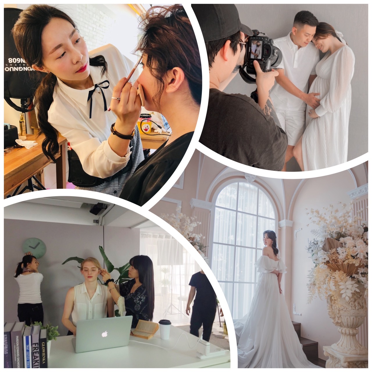婚禮梳化服務、婚紗、全家福、形象照拍攝、廣告工商彩妝造型、柔霧眉、韓式柔霧唇。